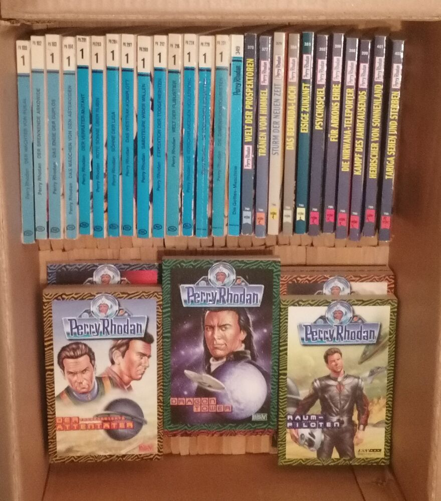 Wir verkaufen die Perry Rhodan-Sammlung meines Vaters. Er hat alle von Band 1 bis 3112. Vor allem bei den Besonderen handelt es sich um Erstausgaben - Zustand: gelesen, aber pfleglich behandelt. Die Einlagen sind noch drin.